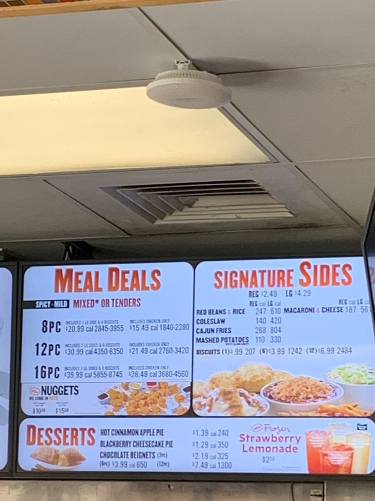 chicken tenders marinated and fried with Louisiana herbs and seasonings. Served with regular sides, buttermilk biscuits and drinks. Includes dipping sauces.